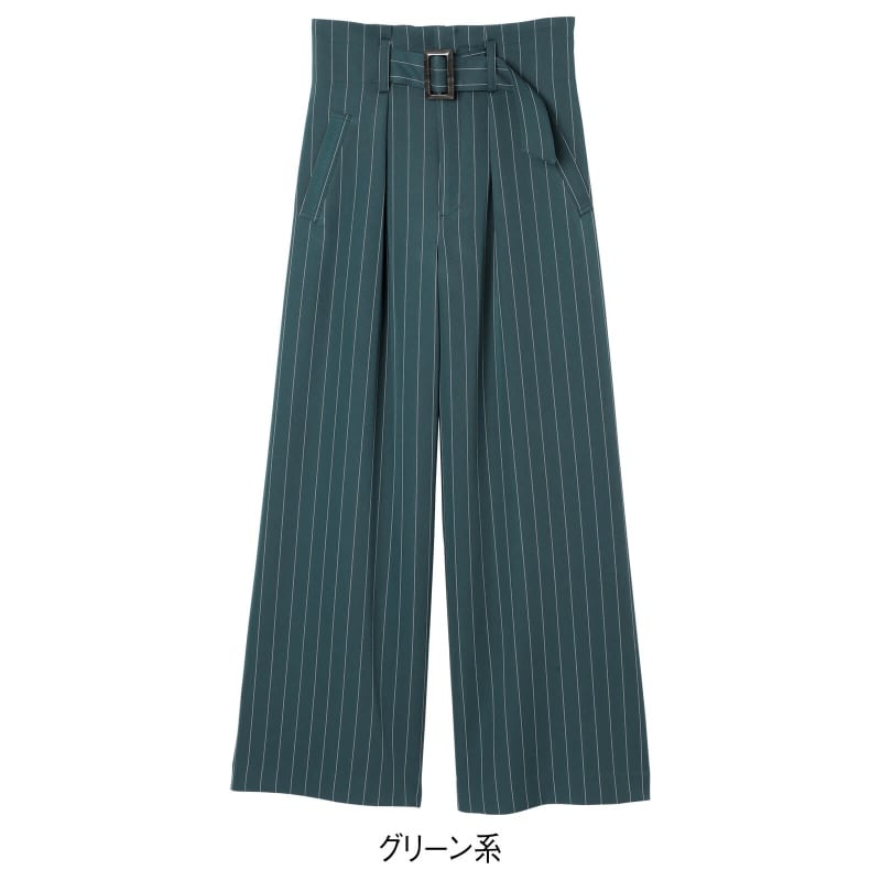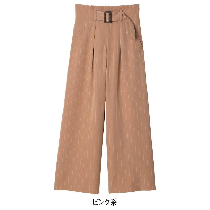 フロント部分にベルトデザインが付いたワイドパンツ。