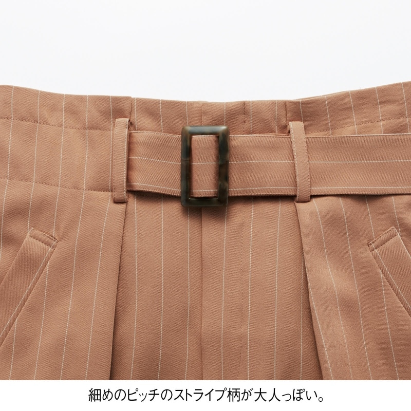 縦長に見せるストライプ柄ときれいなシルエットで脚長魅せも。
