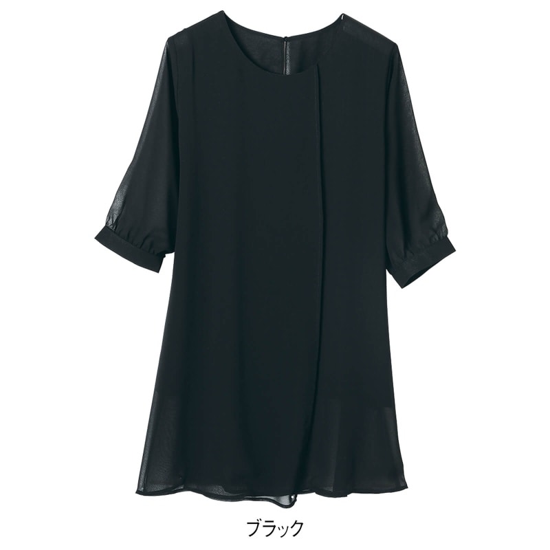 シフォンのレイヤードデザインがお腹まわりをふんわりカバー。