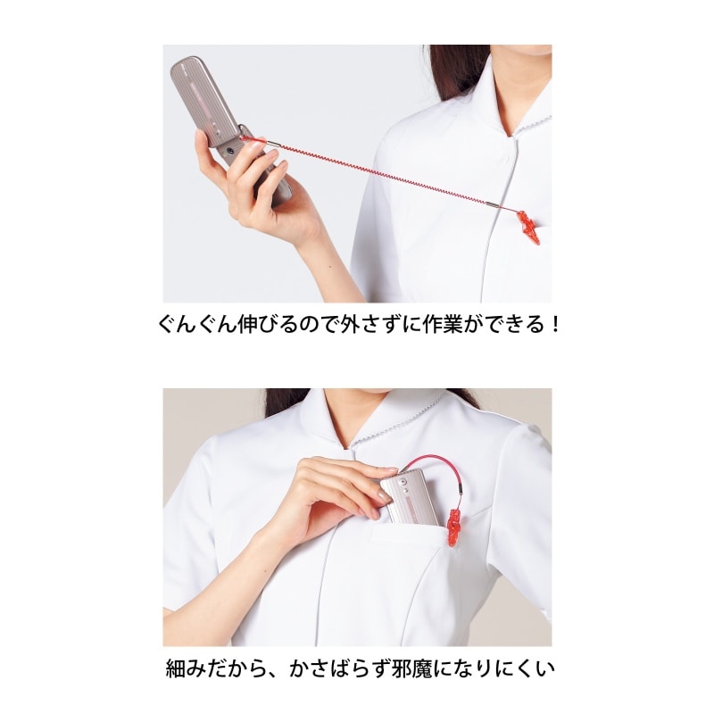 クリップもコイルも100均の物とは比べ物にならない耐久性があると思います。気に入ったので数本買いましたが、なかなか壊れないので色を換える時以外、新しい物を出す必要が無いです。細いのでユニフォームや勤務中のバックなどに付けていても邪魔にならないです。投稿者:むらさき性別/属性:女性年代:身長(cm):体重(kg):購入したサイズ:ピンク/