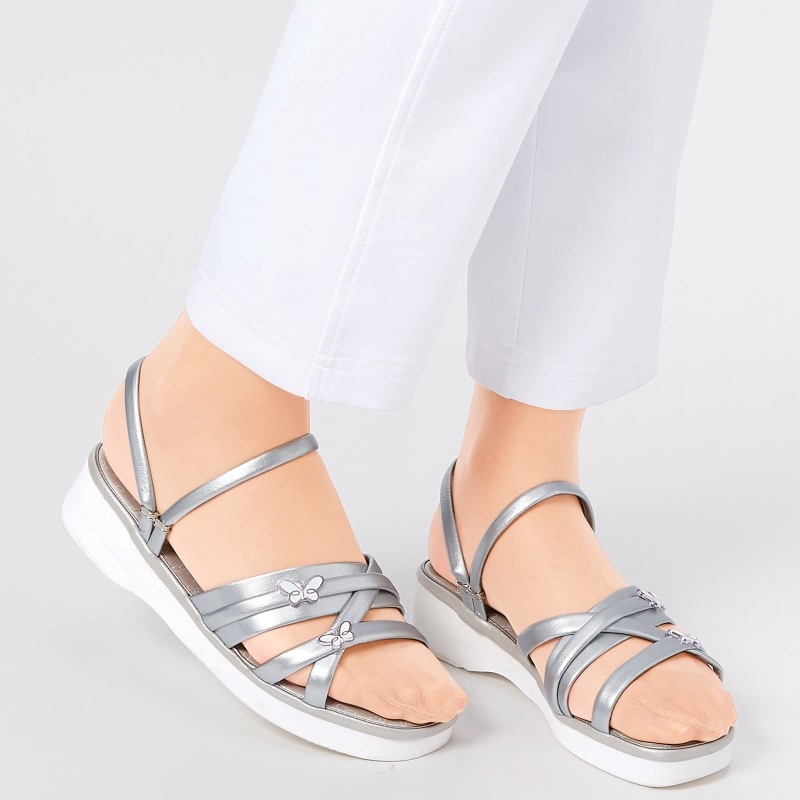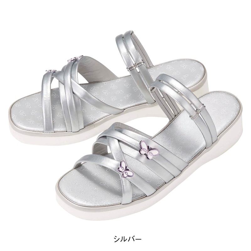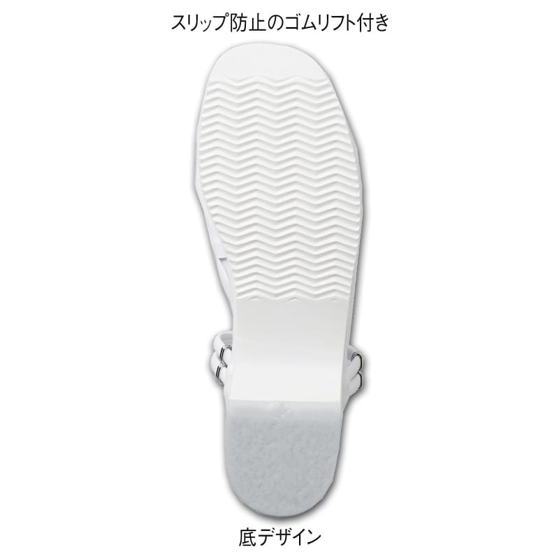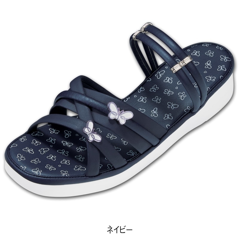 ・サイドの金具で自由に脱ぎ履きしやすい2way ストラップ。
