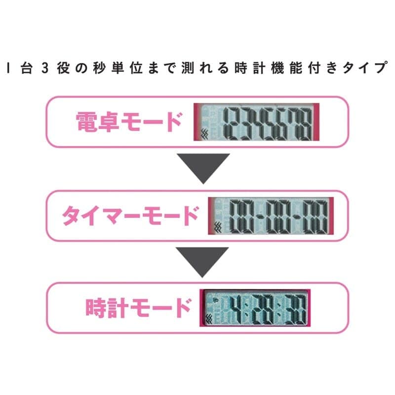 電卓・タイマー・時計機能がボタンひとつで簡単モード切替!
