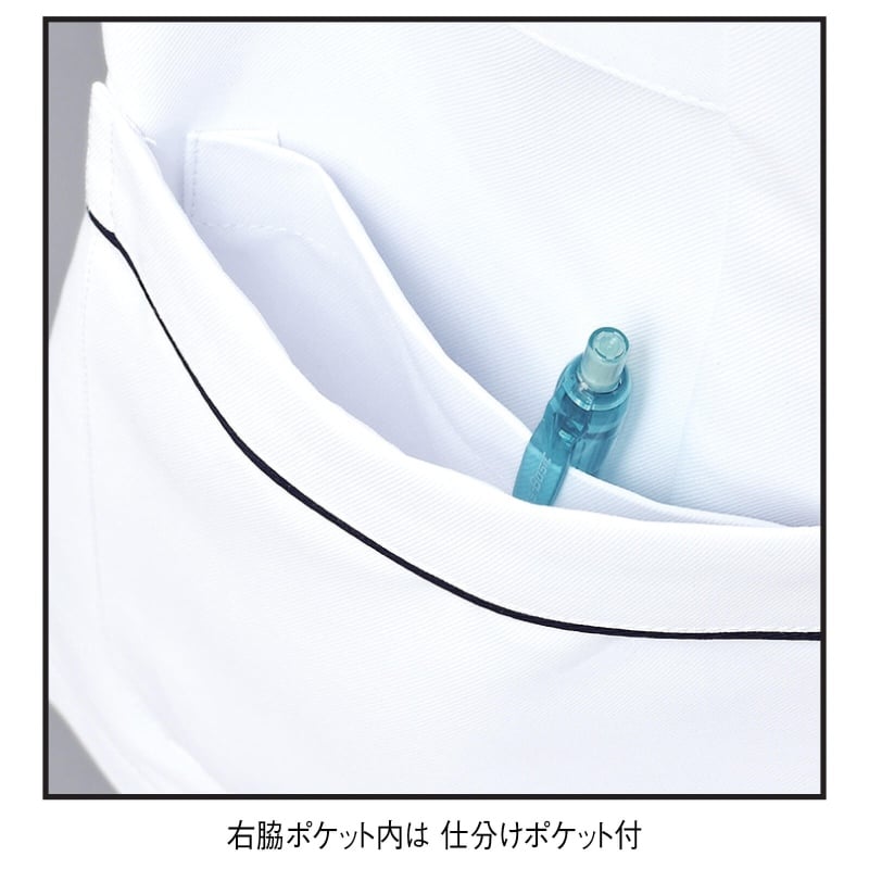 ●素材/ポリエステル100(ギャバ)●ポケット位置/左胸ポケット、両脇ポケット(右側ダブルポケット)