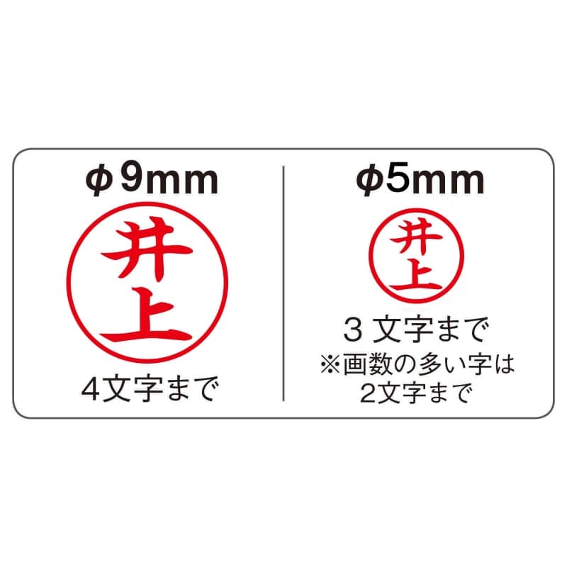 9mm印:4文字まで、5mm印:3文字まで※画数の多い字は2文字まで