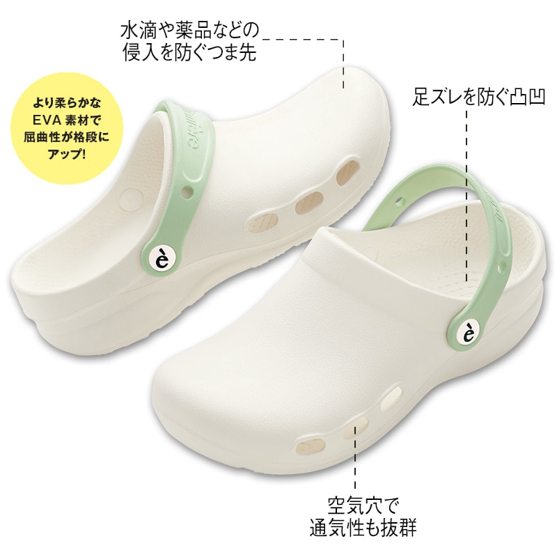 人気の軽量EVAシューズが進化。特殊弾力樹脂を採用し十分な厚み&柔軟性で足を保護。さらに抗菌力が向上し清潔&安全性を支えます。