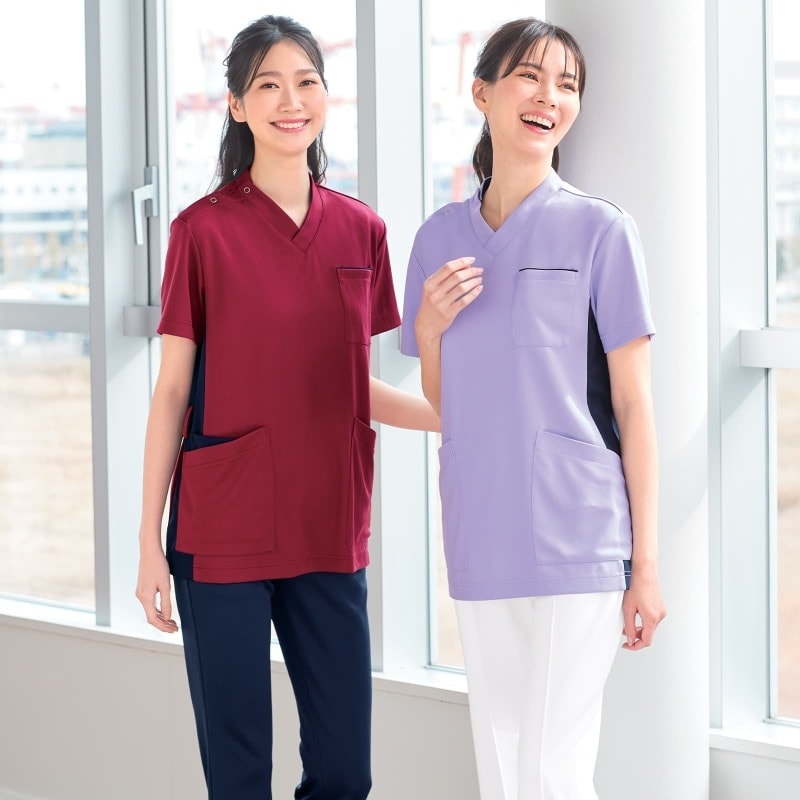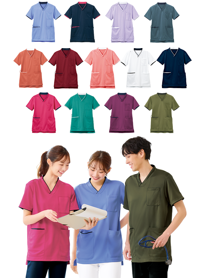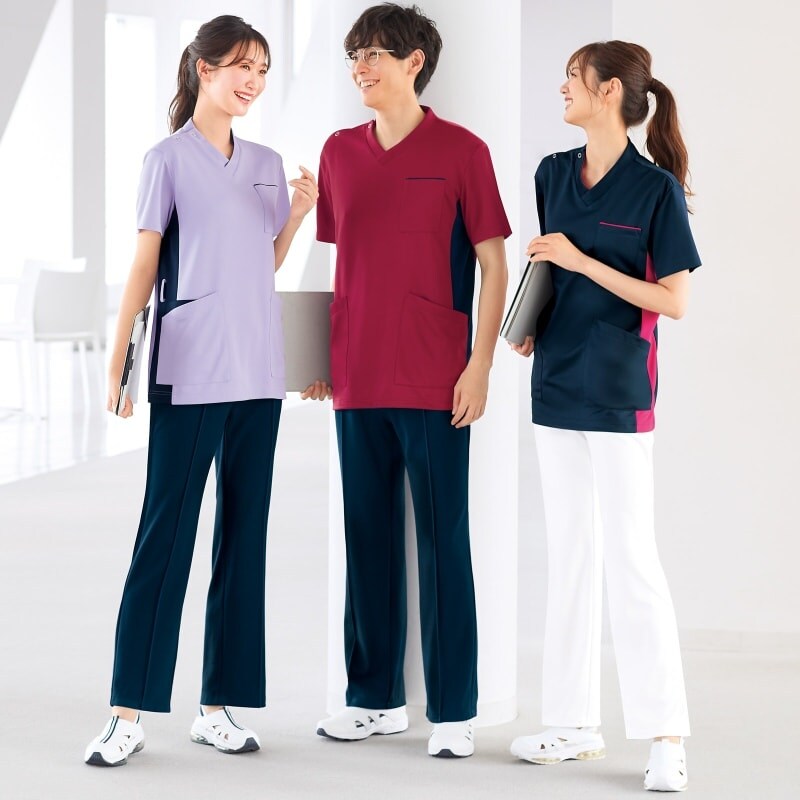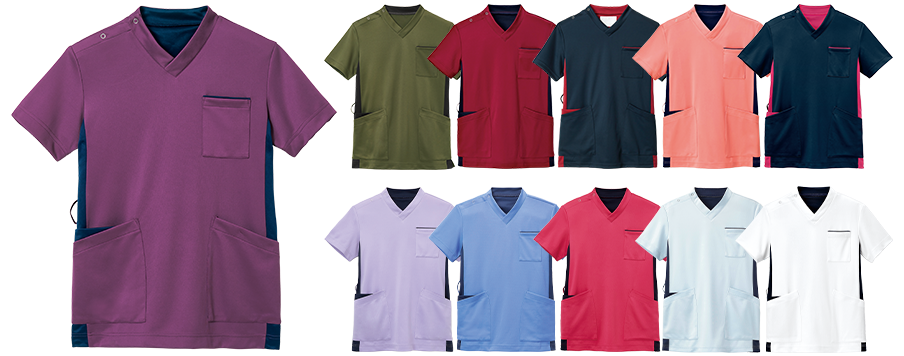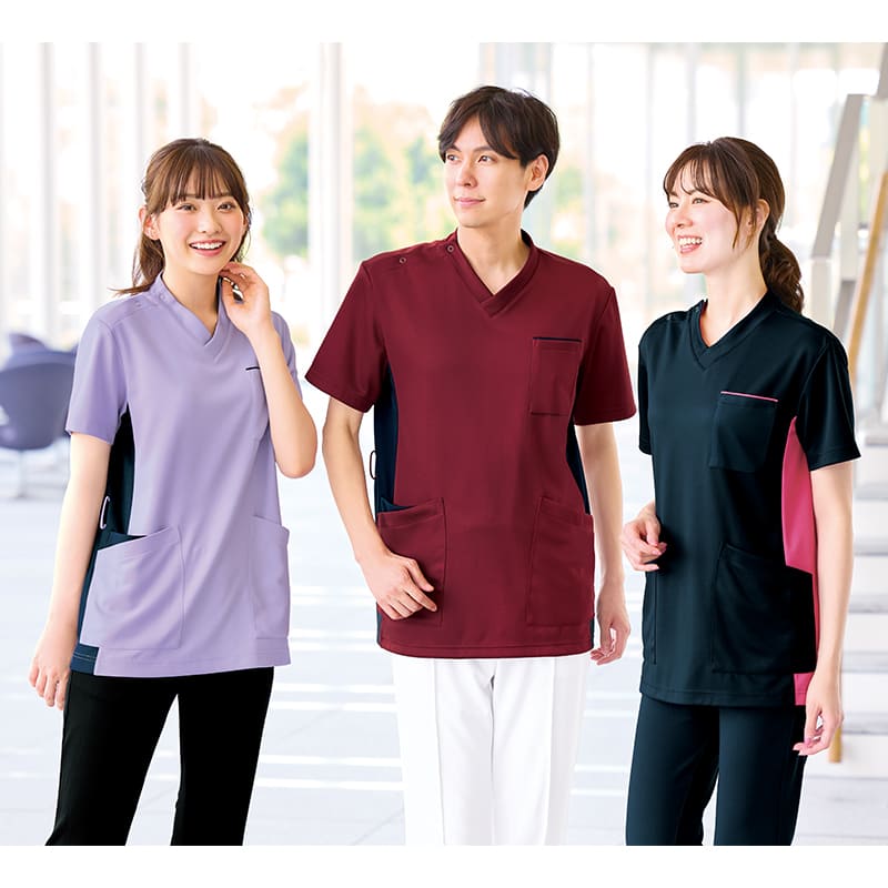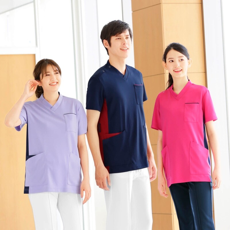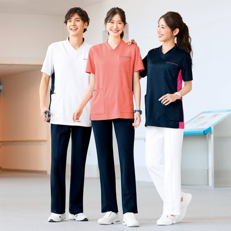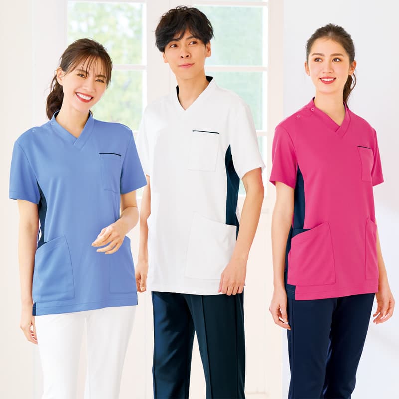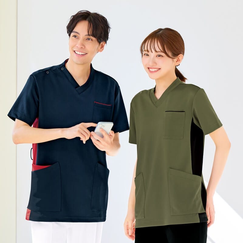 - > ★パウダーストレッチ 脇配色スクラブ(男女兼用)