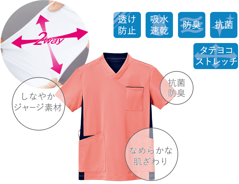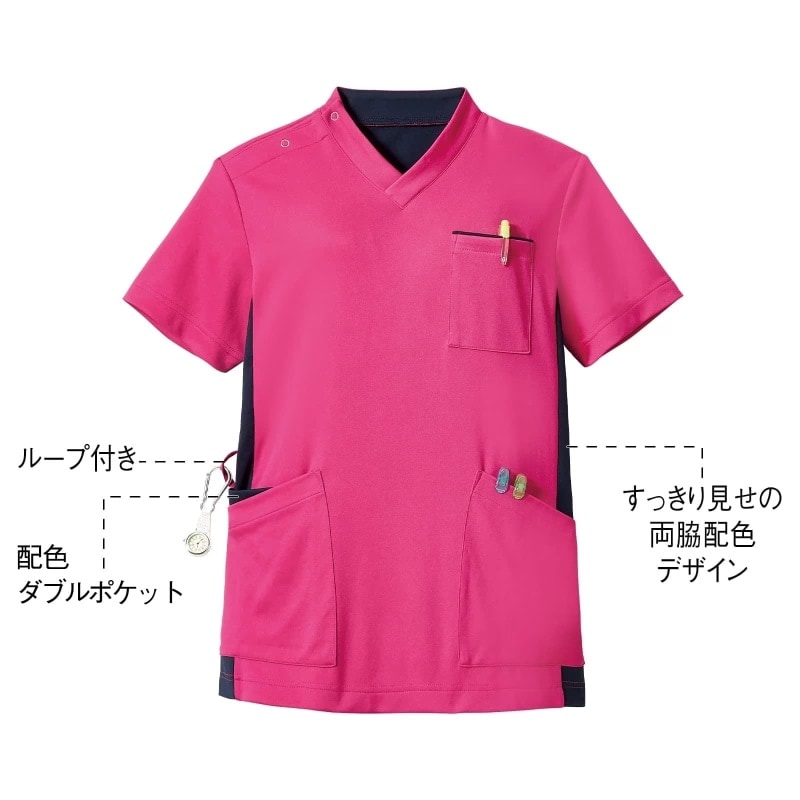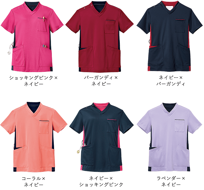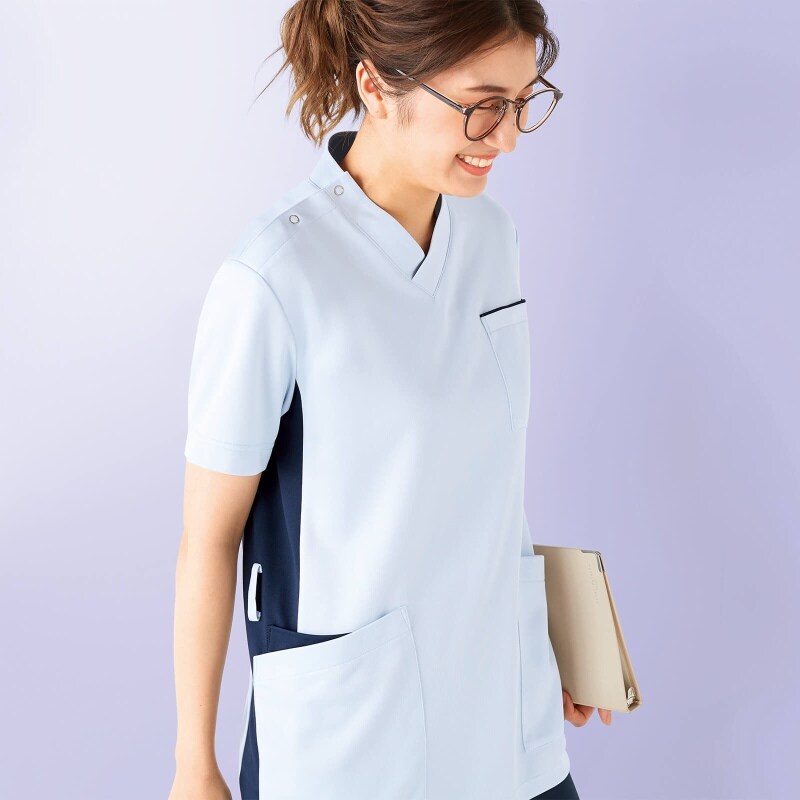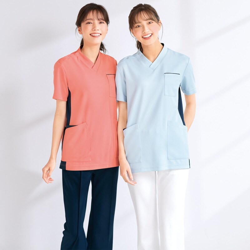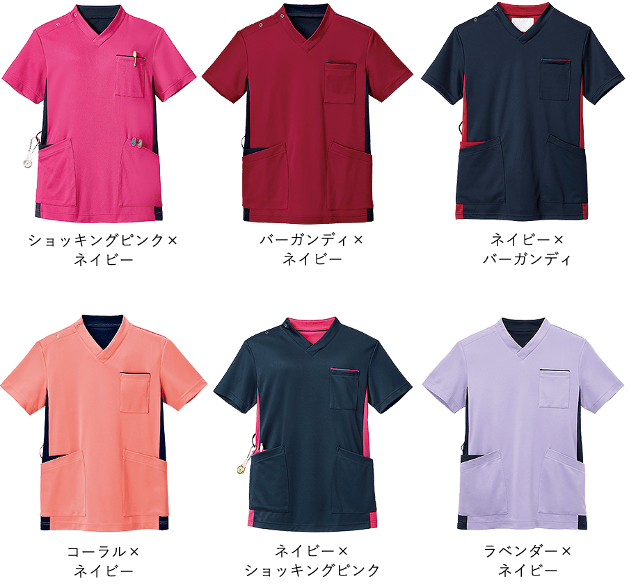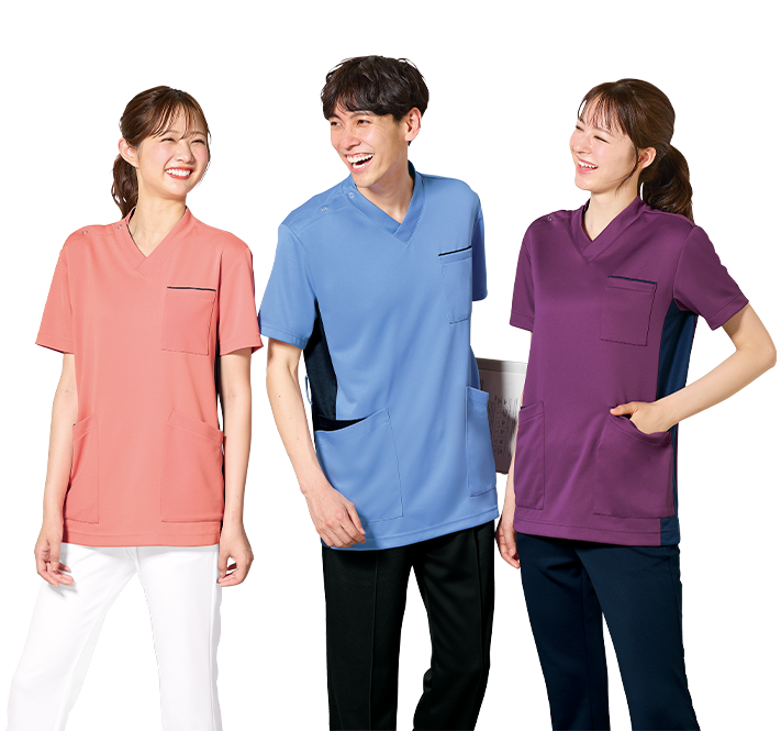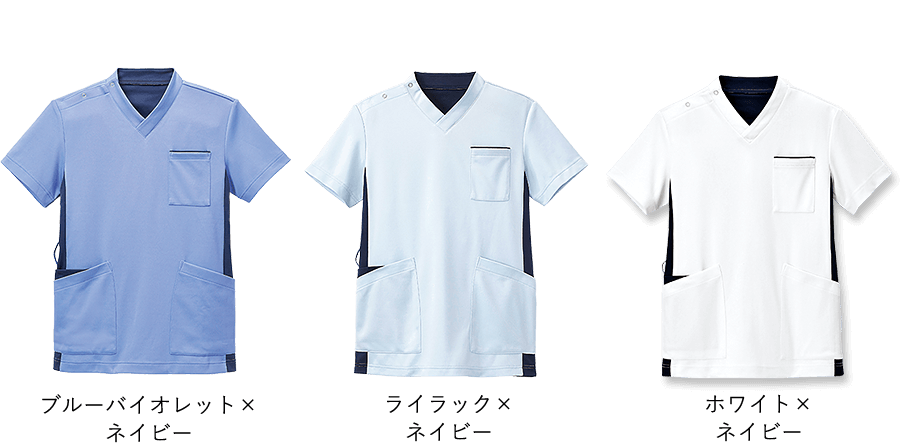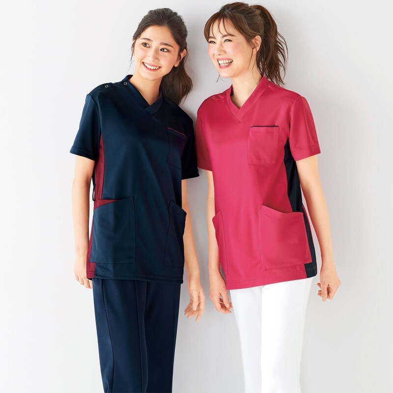 - > ★パウダーストレッチ 脇配色スクラブ(男女兼用)