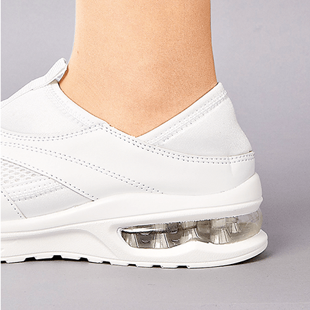 立ち仕事なのでむくんだ足にもかかとにエアーが入っているため凄く履きやすいです。以前は靴底エアーを使用してましたが値段もお手頃でこの靴を選んで良かったと思いました。投稿者:ナナ性別/属性:女性年代:60代~身長(cm):151~155体重(kg):56~60購入したサイズ:ホワイト×ベリーピンク/M