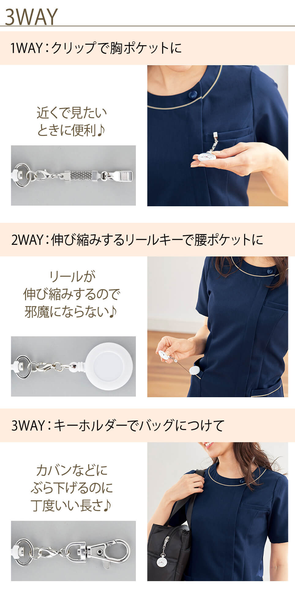 3wayは色々使えてとても便利でした。他の時計と比べると軽いです。ただリールキー名札にぶら下げると重くて動くとリールが引っ張られます。大きさはちょうど良いです。何かにぶら下げて使いたいので、名札などぶつかった時に音がでないようゴムカバーが欲しいです。投稿者:yuki3性別/属性:女性年代:30代身長(cm):体重(kg):購入したサイズ:ホワイト/