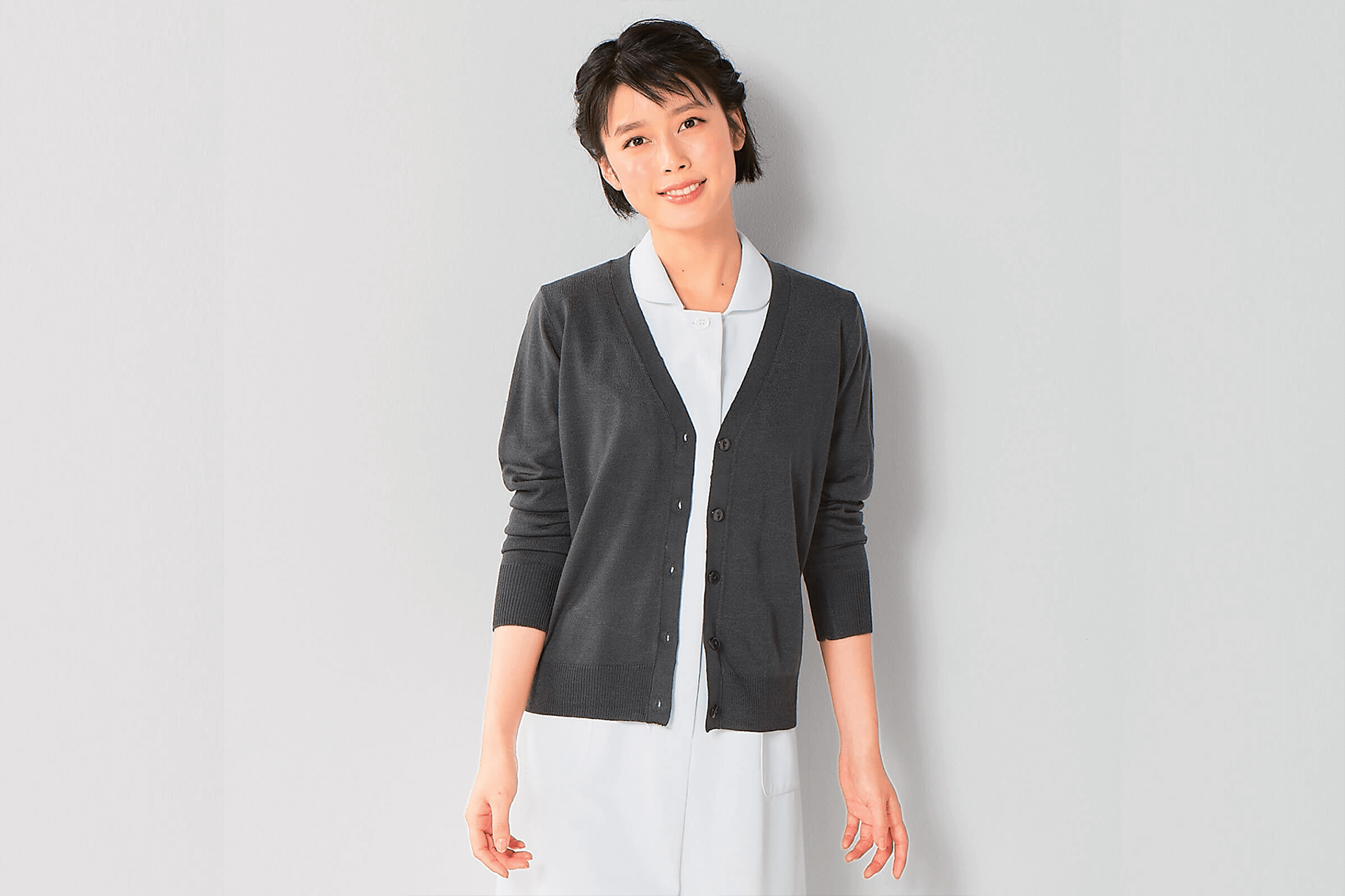 - > じゃぶじゃぶ洗えて乾燥機OK!毛玉になりにくい制電カーディガン(レギュラー丈)
