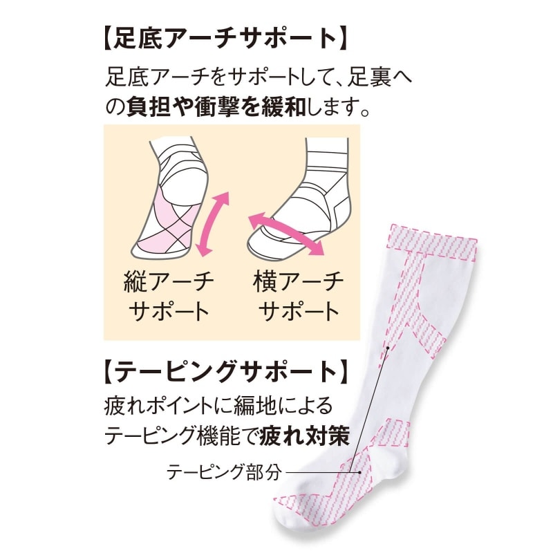 - > 足底アーチサポート着圧ハイソックス(3足組)