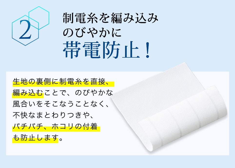 抗ウイルス加工の厳しい基準をクリアした高機能素材だから、ウイルスの増殖を抑制するのにも効果を発揮します。
