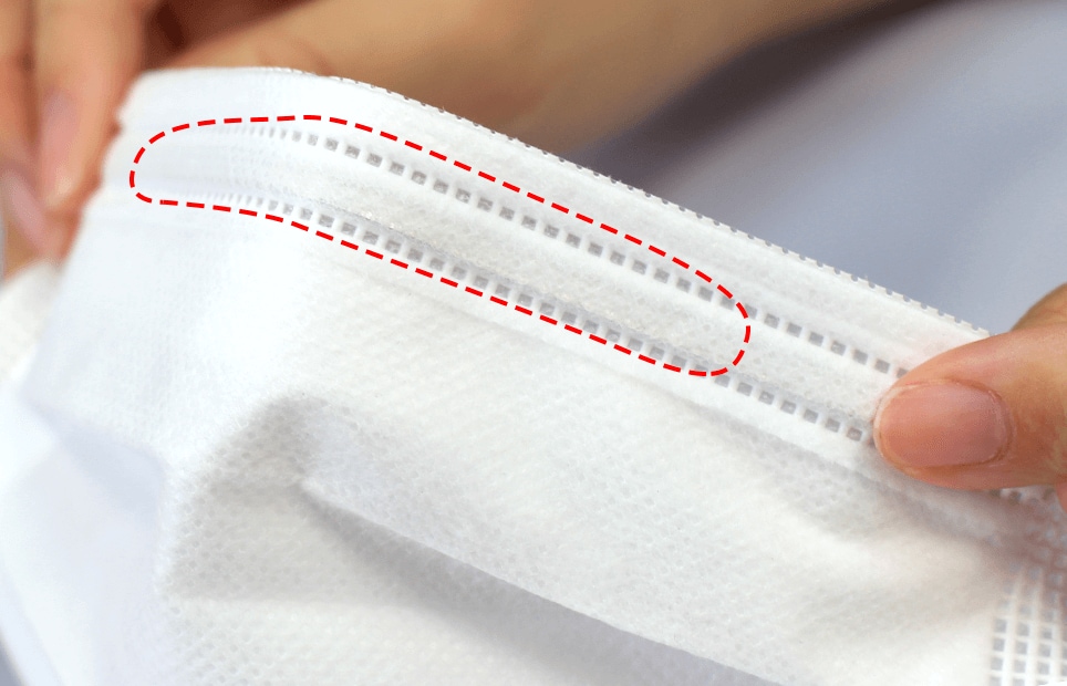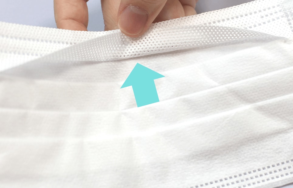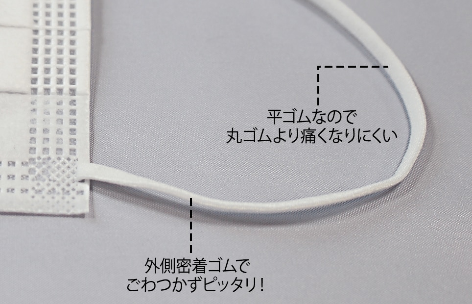 内側上部のプリーツにより呼気がモレるのを防ぐ