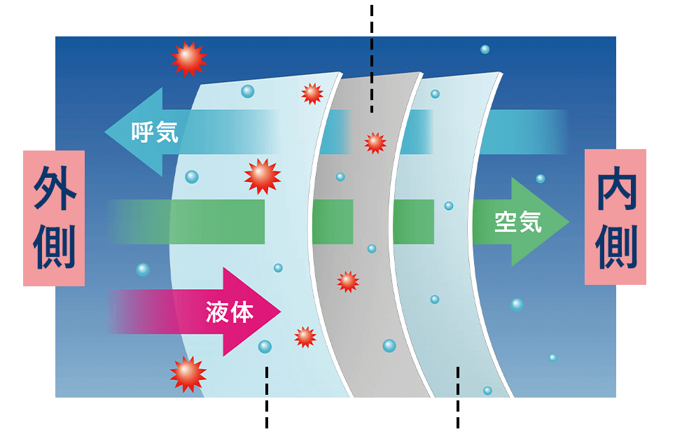 液体(血液)が飛散した場合、どの程度の圧力にまで耐えうるかを示します。