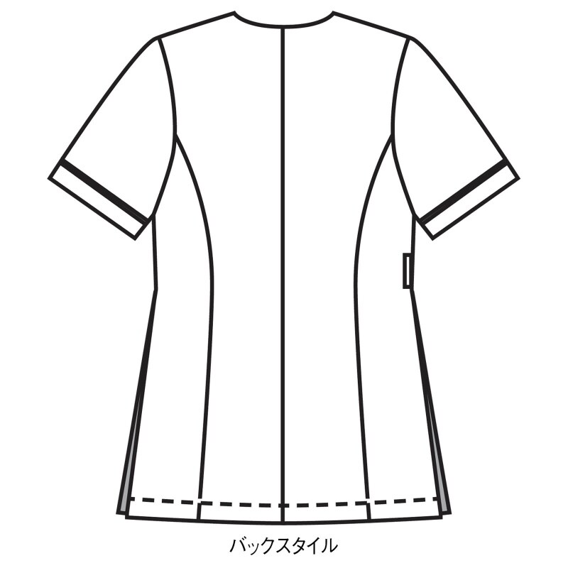 両サイドの配色ボックスプリーツがおしゃれな上品スクラブは前ファスナーで着脱もラク。