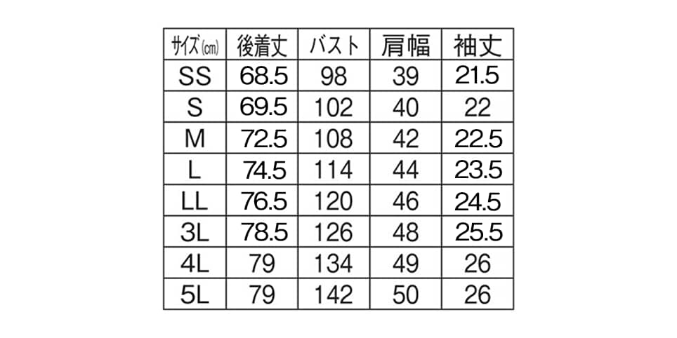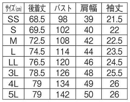★コットンブレンド カラースクラブ(男女兼用)のサイズ表
