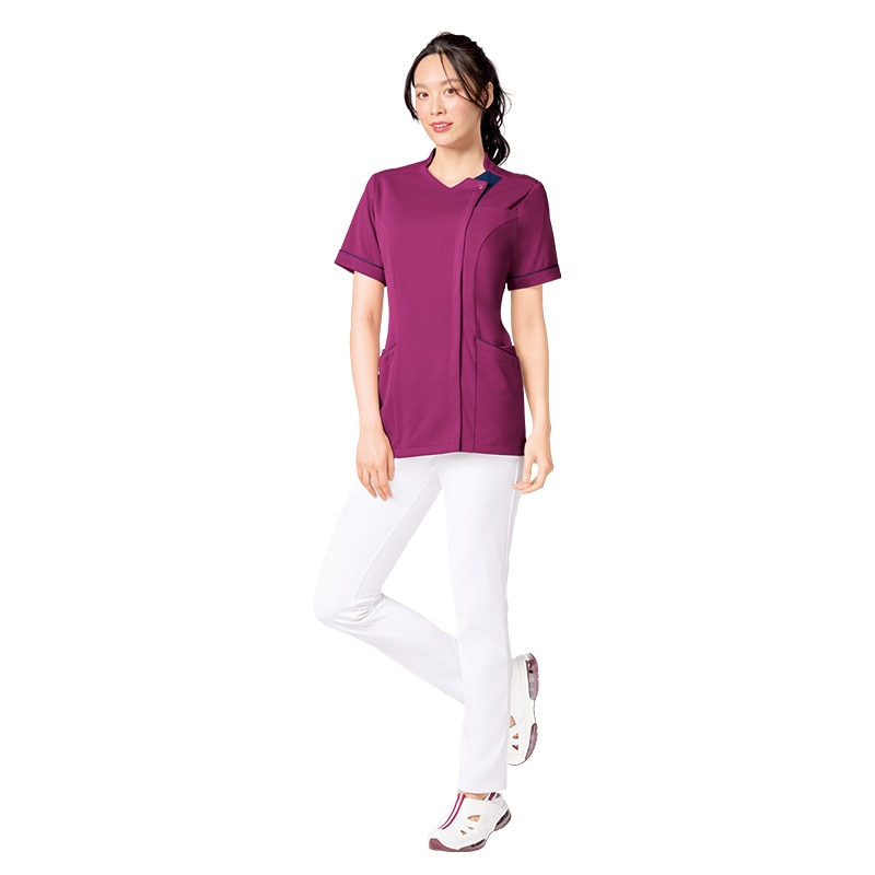 - > ★透け防止ウイルスガード ポイント配色ストレッチスクラブ