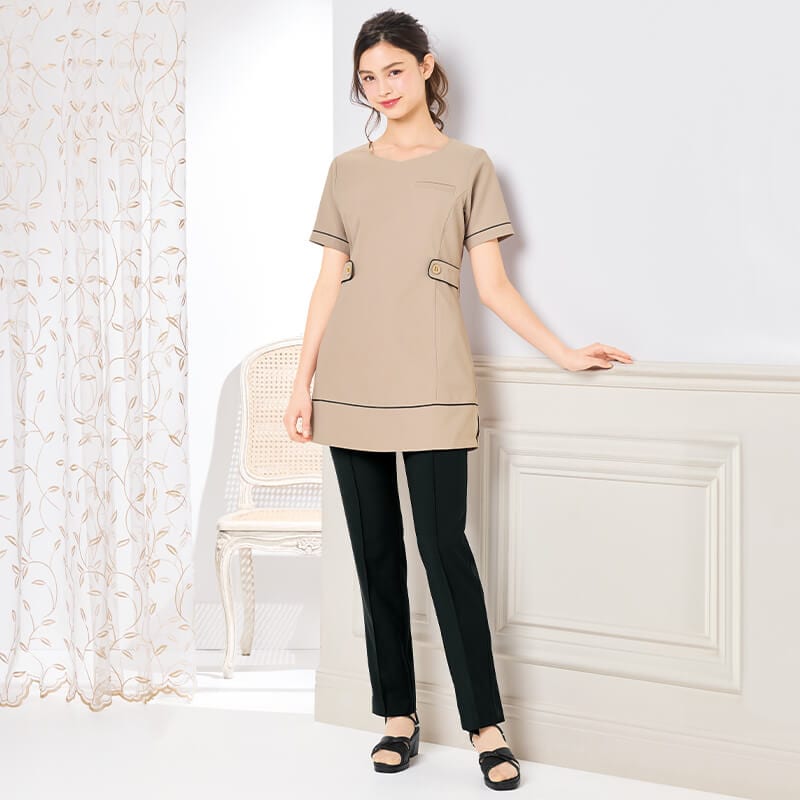 おすすめのチュニック「ビューティウェア 防汚機能配色パイピングチュニック」はこちら