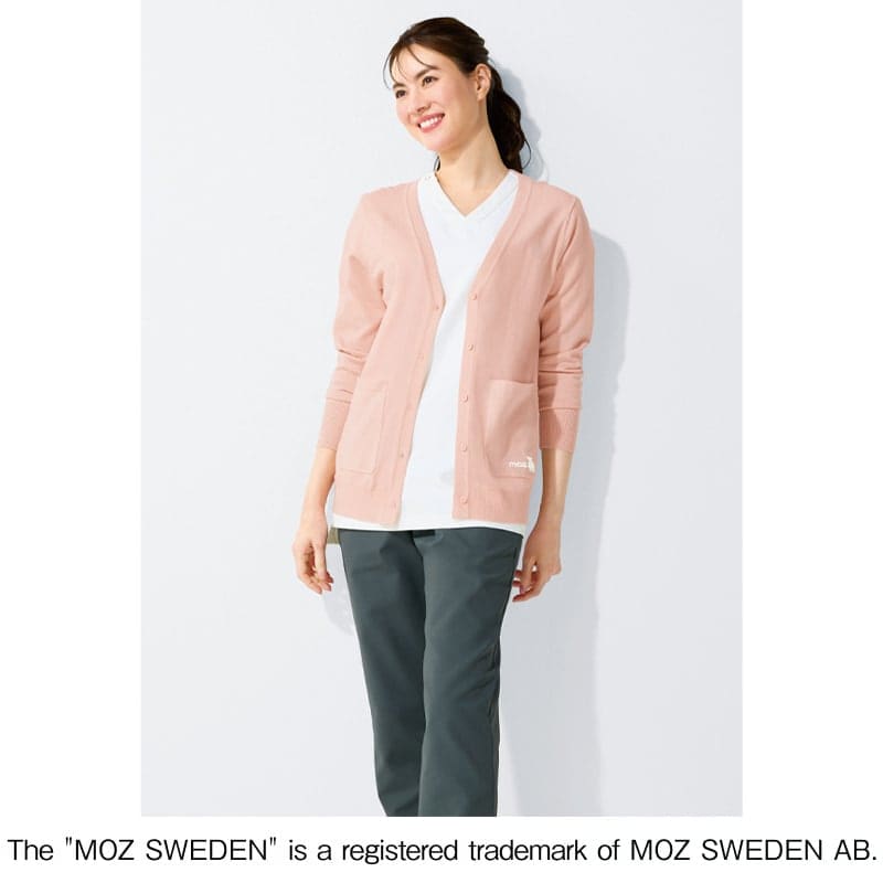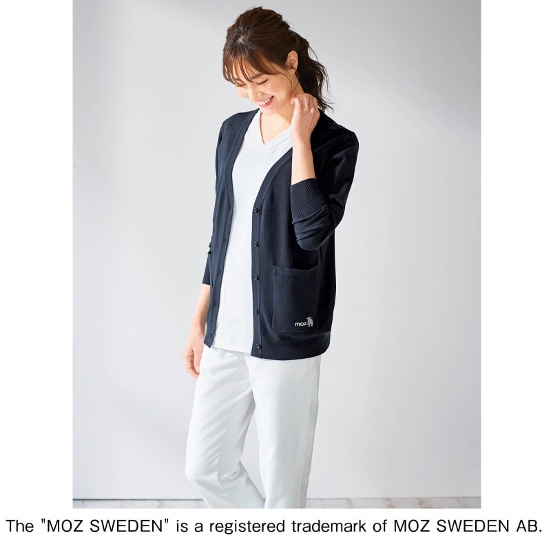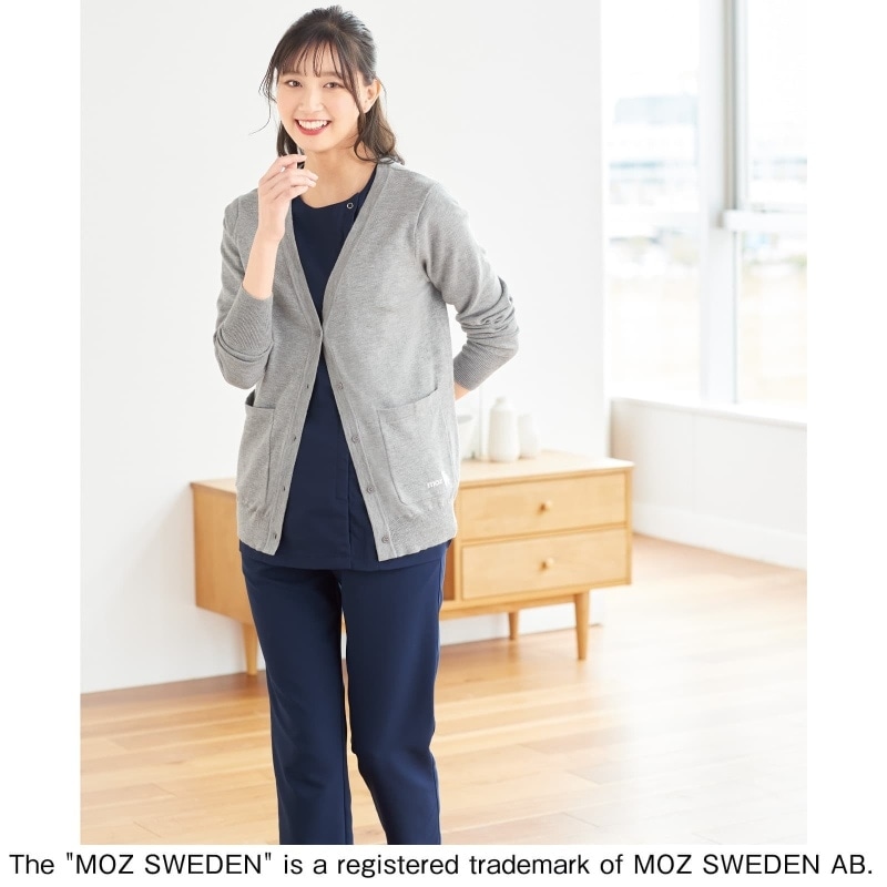 MOZの刺しゅうと衿裏配色で差がつく、洗濯機で洗えるカーデ
