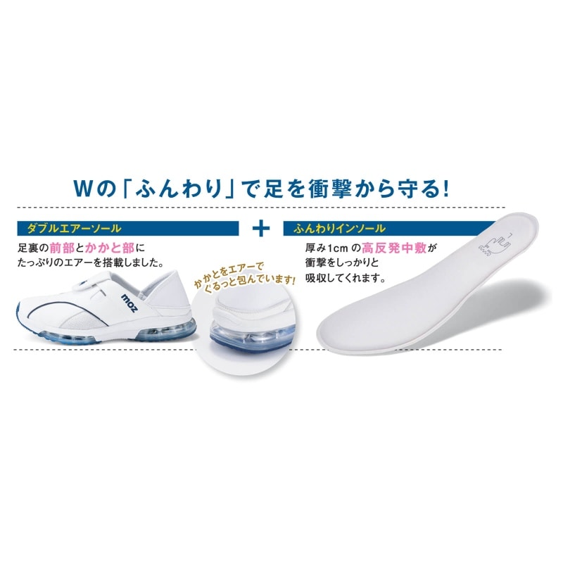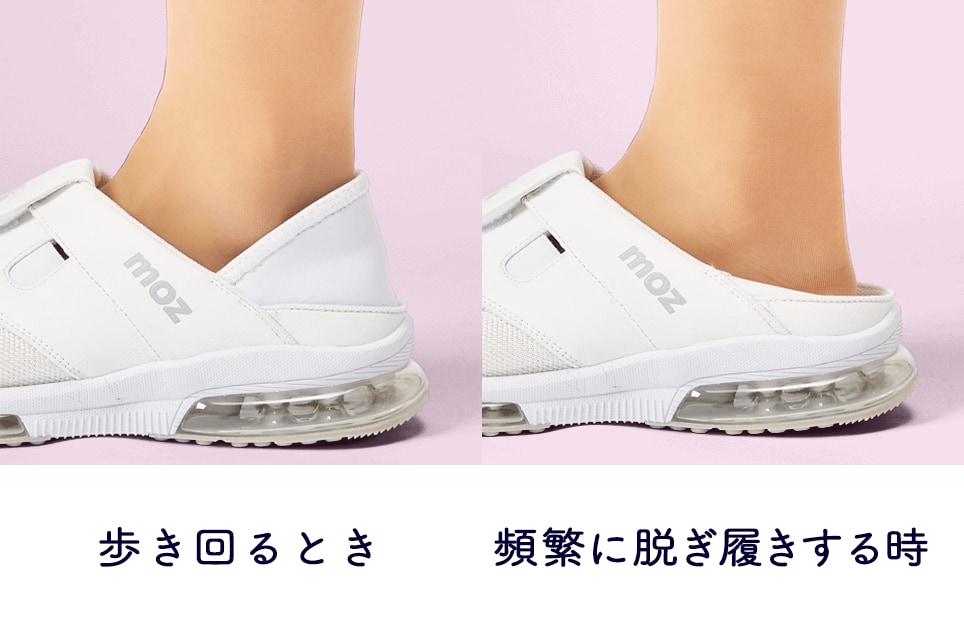 他のシューズと悩み抜きこちらのmozを購入。高反発の中敷と見た目の可愛さにとても惹かれました。が、いざ履いてみると、シューズの重さで踵が抜ける感覚がありました。足サイズは24.5cmですし、決してサイズが合わないという感じではないのですが、普段から着圧強のソックスを履いているので足が強く引き締められたから?かも‥と考えています。