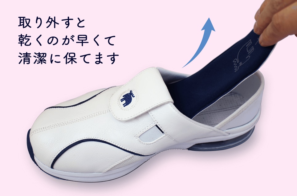 中敷きもふかふかで、脱ぎ履きも楽で、夜勤で一晩中動き回っても疲れません!もう何度もリピートしてます。お勧めです。投稿者:こなつ性別/属性:女性年代:身長(cm):161~165体重(kg):購入したサイズ:ホワイト×ピンク/L(24.0~24.5) -