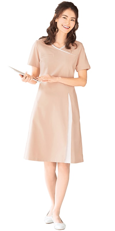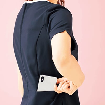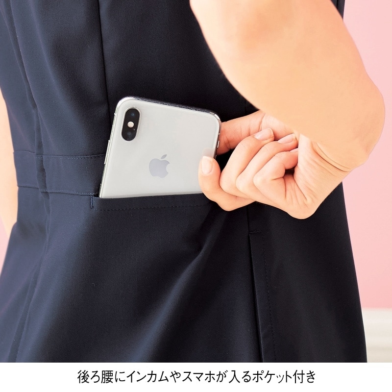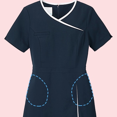 - > ★ビューティウェア 防汚機能インカムポケット付ラップ風ワンピース