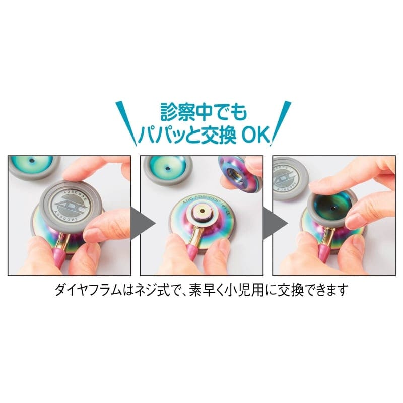 ダイヤフラムはネジ式で、素早く小児用に交換できます