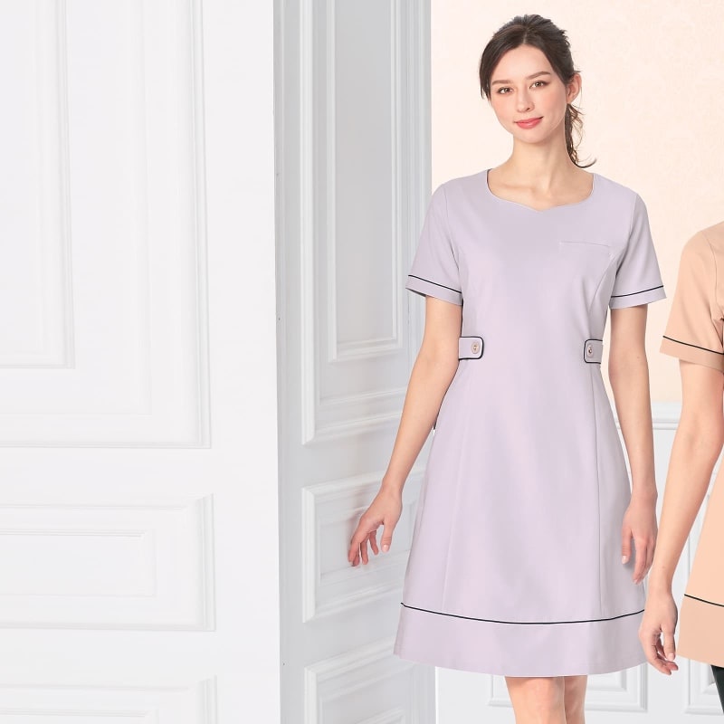 ウエストライン高めでベルトの緩み具合も程よく、パイピングデザインも、カワイイです。ボタンで華やかさを感じます。最初、ベージュを購入、カタログのカラーイメージより実物は濃いと思いました。ベージュはどちらかというとピンキッシュオレンジよりな感じです。カラー交換して頂き、ライトグレーを購入しました。同僚には、ラベンダーっぽいね、と、言われ、自分自身、地味なグレーではなかったので気に入っています。ナースユニホームで、後ろファスナーは初めてだったので少々不安もありましたが問題なしです。ポケットもこの製品のようにサイドにあるタイプも初めてで、ボールペン、タイマー、ハサミなどの身に付けたい物品が全て胸ポケットに…となると限界があります。が、それも慣れてデザインを崩さないように気を付けたいと思います。シワになりにくく、速乾です。色移りの心配もなし。生地も伸縮性があり動きやすいです。投稿者:小豆っぺ性別/属性:女性年代:60代~身長(cm):146~150体重(kg):41~45購入したサイズ:ライトグレー/S -