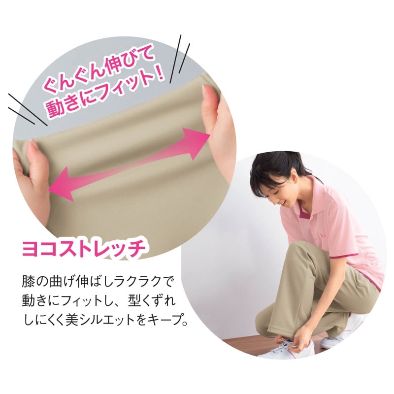 膝の曲げ伸ばしラクラクで動きにフィットし、型くずれしにくく美シルエットをキープ。