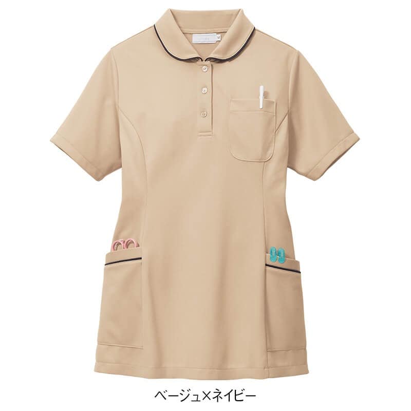 ★ナノプラチナ抗菌防臭 さらっと凹凸素材パイピング使いレディースシャツのサイズ表