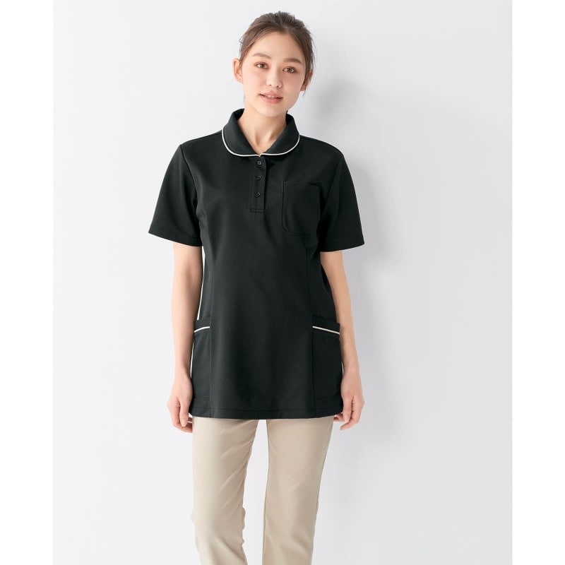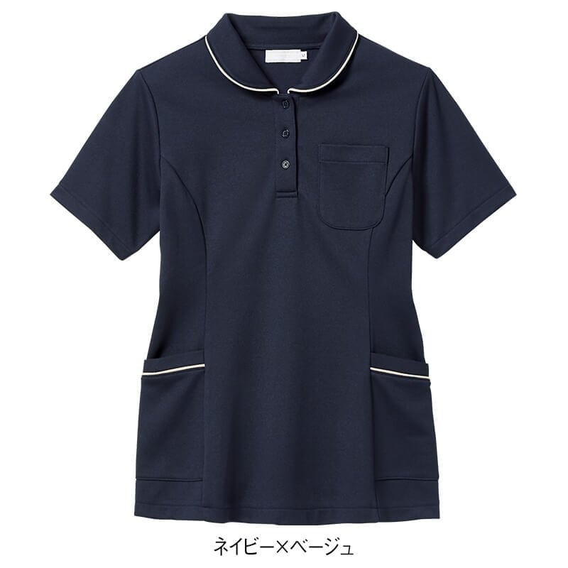 ★ナノプラチナ抗菌防臭 さらっと凹凸素材パイピング使いレディースシャツ