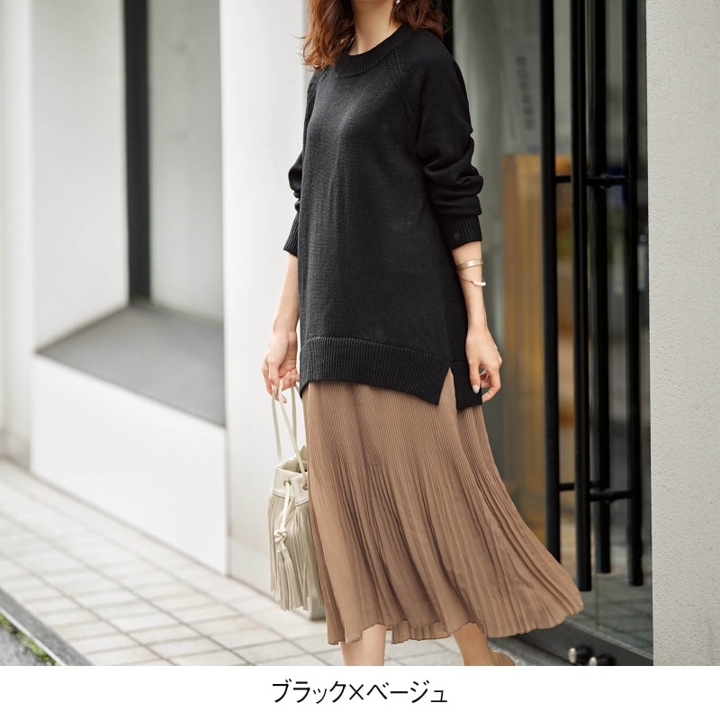 ゆるニット×プリーツスカートの最旬コーデが1枚で