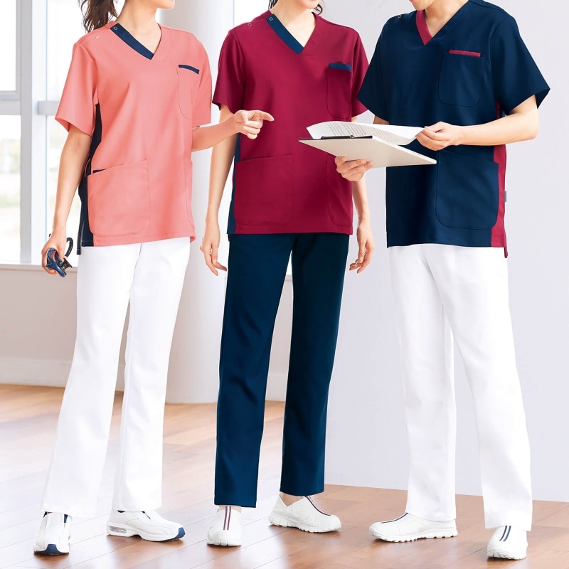 - > ストレッチギャバ制電脇配色スクラブ(男女兼用)