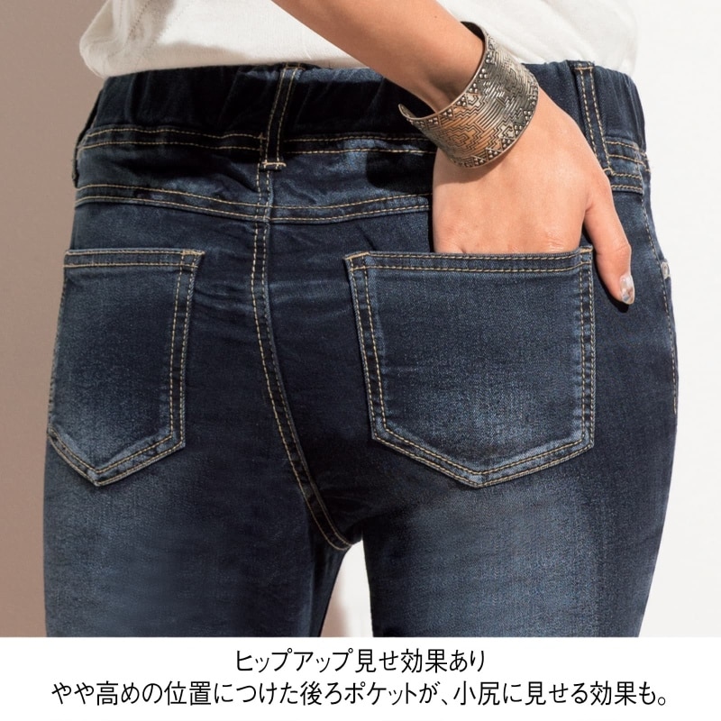やや高めの位置につけた後ろポケットが、小尻に見せる効果も。
