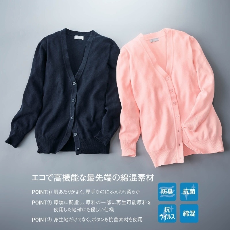 - > 抗菌抗ウイルスエコ素材ふんわり厚手カーディガン(レギュラー丈)