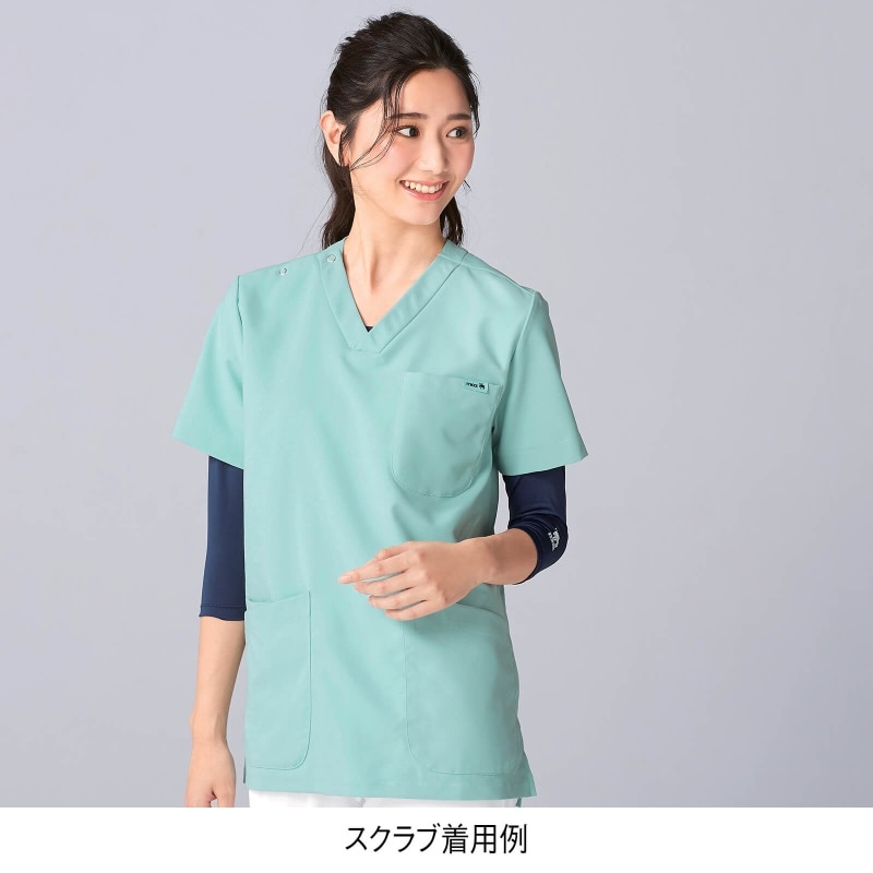 襟元が広めなので白衣からはみ出ることなく着れます。