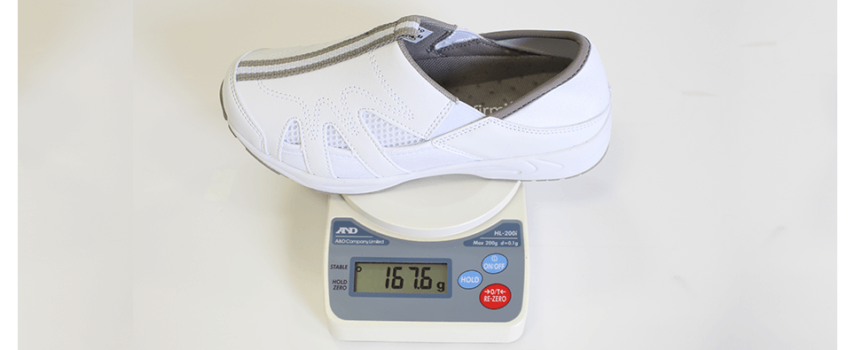 足先に締め付け感がなく、脱ぎ履きしやすく、軽い。