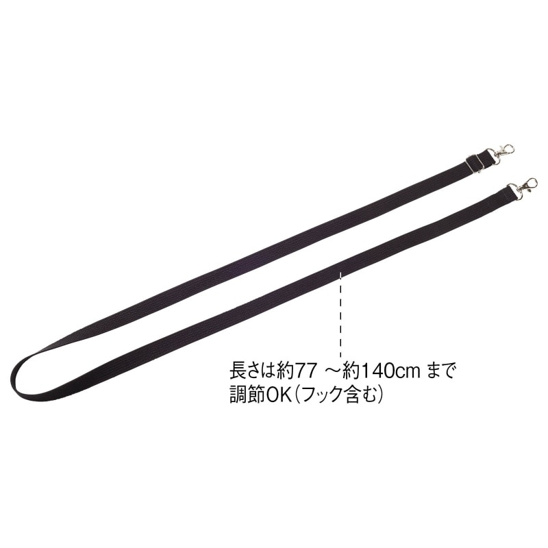 - ●サイズ/ベルト幅:20mm、長さ:最短時77cm・最長時140cm(フック含む)