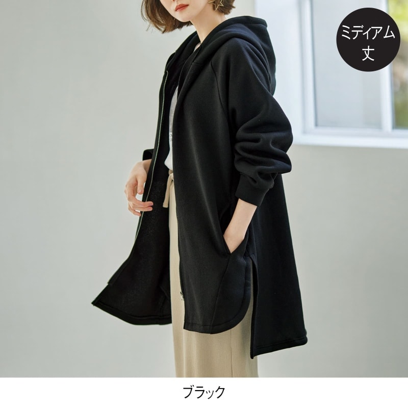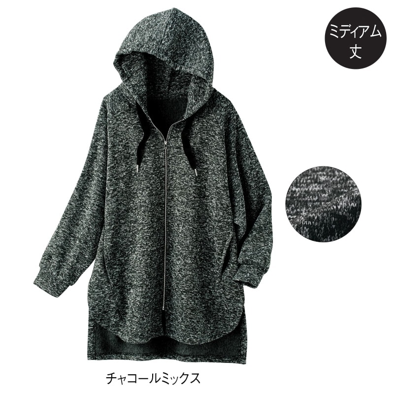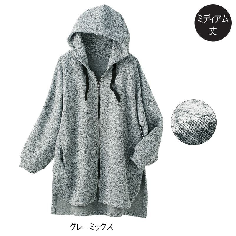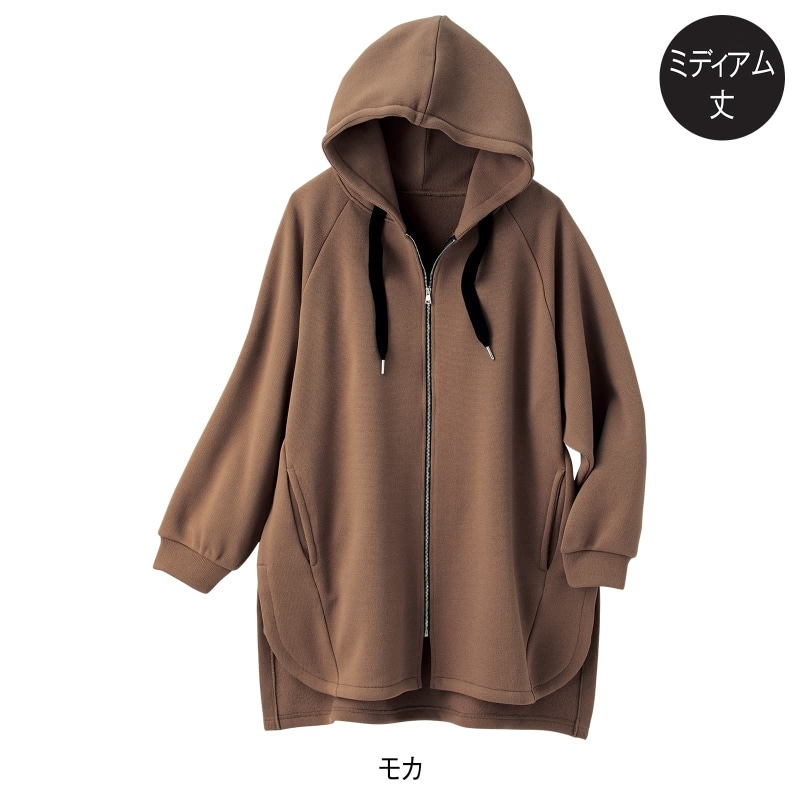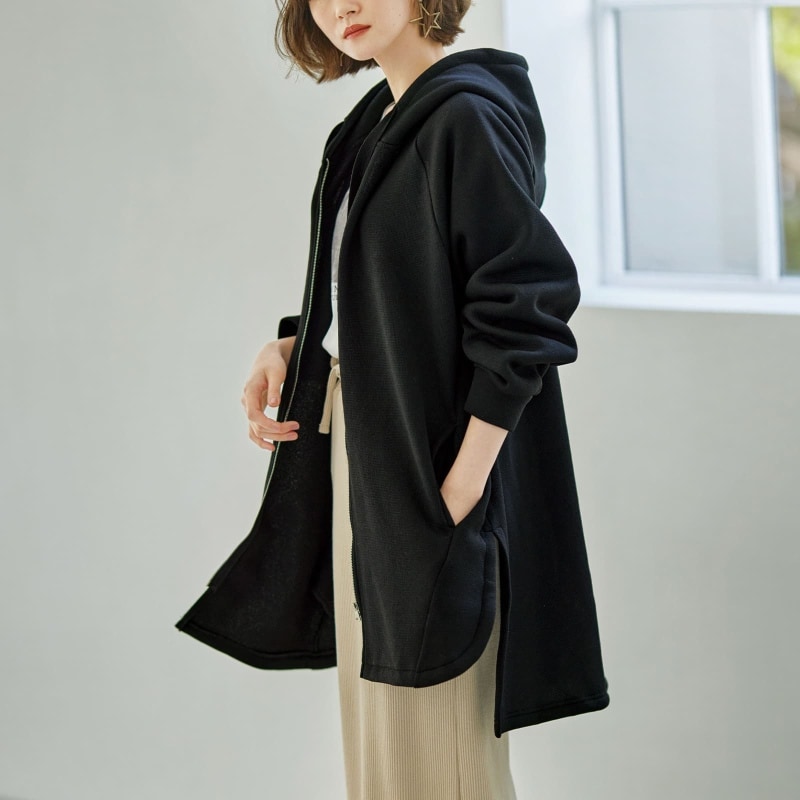 ボリューム感のあるフードとビッグシルエットが印象的なパーカーコート。