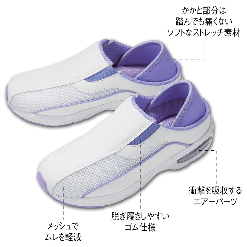 かかとのエアーで立ち仕事でも足腰ラクラク