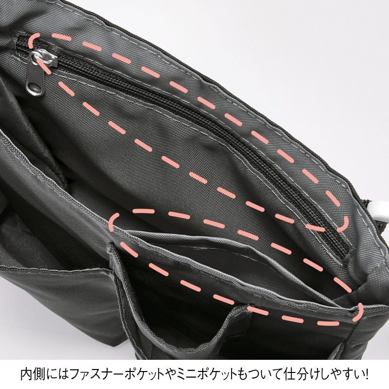 ・内側にはファスナーポケットやミニポケットもついて仕分けしやすい!