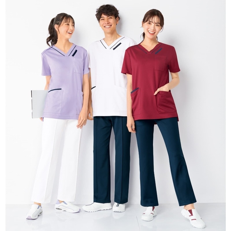 - > ★パウダーストレッチ 配色ポケットスクラブ(男女兼用)