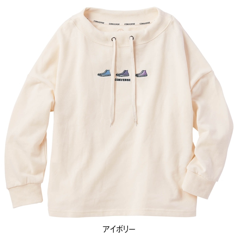- > <CONVERSE>裏毛シューズ刺繍ボートネックスウェット