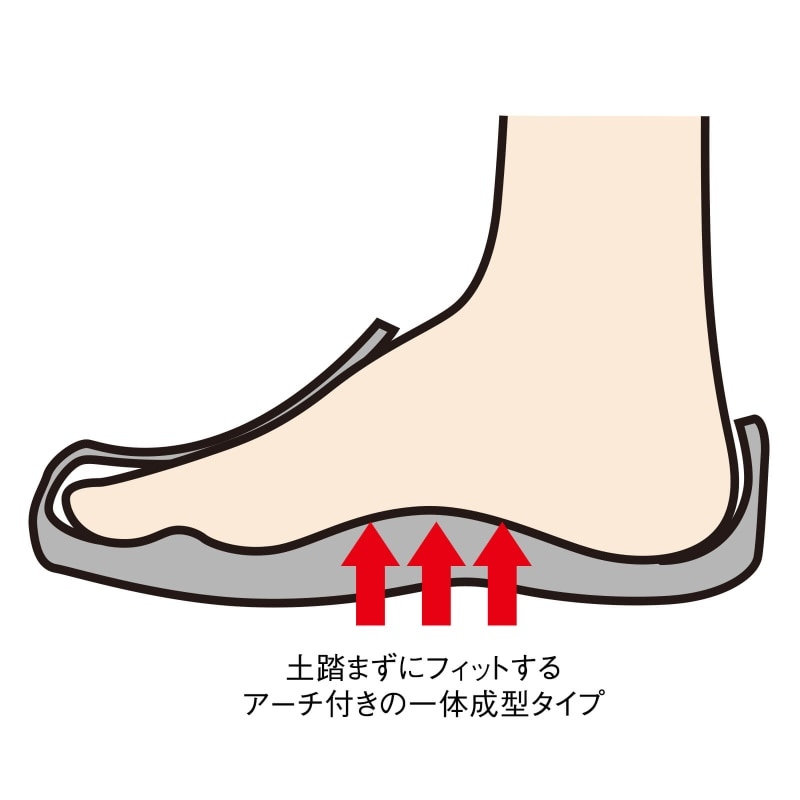・土踏まずにフィットするアーチ付きの一体成型タイプ