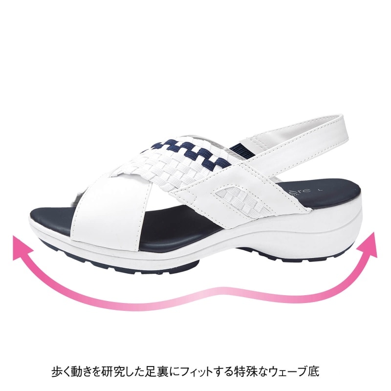 歩く動きを研究した足裏にフィットする特殊なウェーブ底