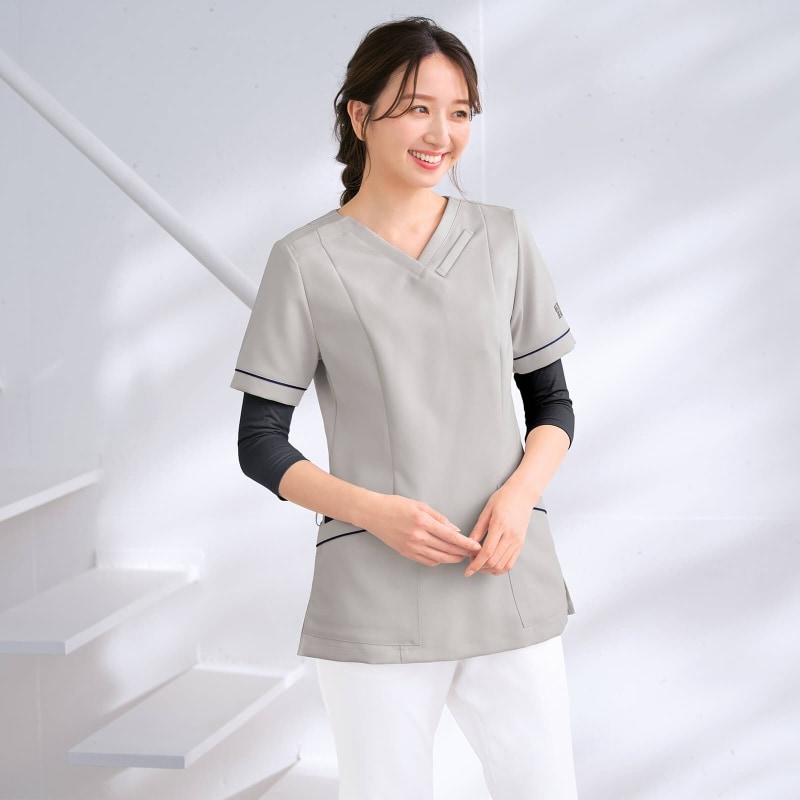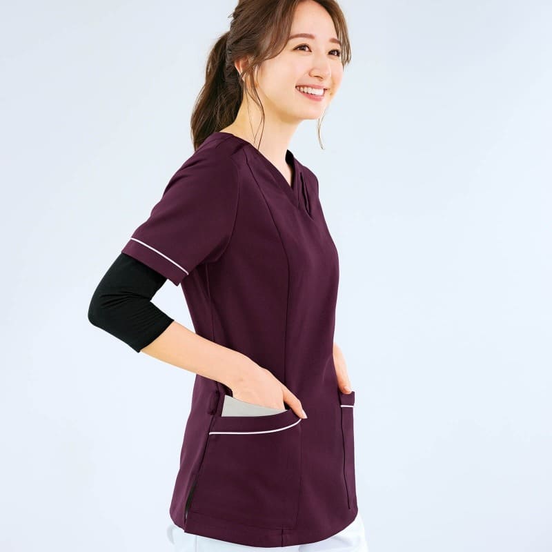ソフトな肌ざわりでドレープ感がある動きやすいストレッチ素材。スクラブと上品に合わせられる3色展開です。