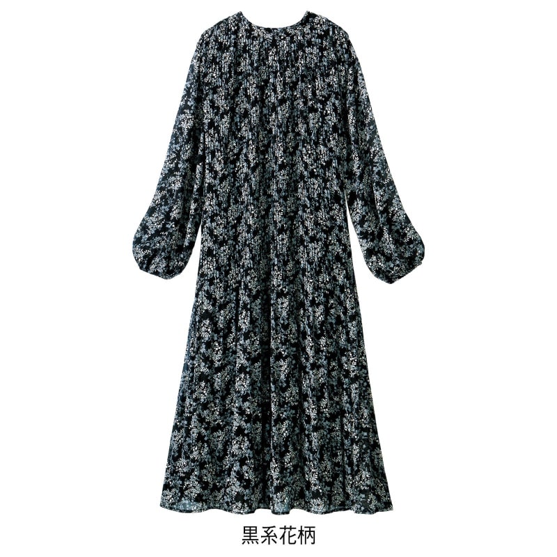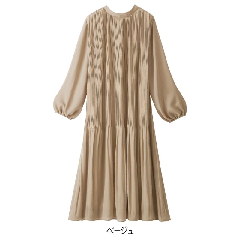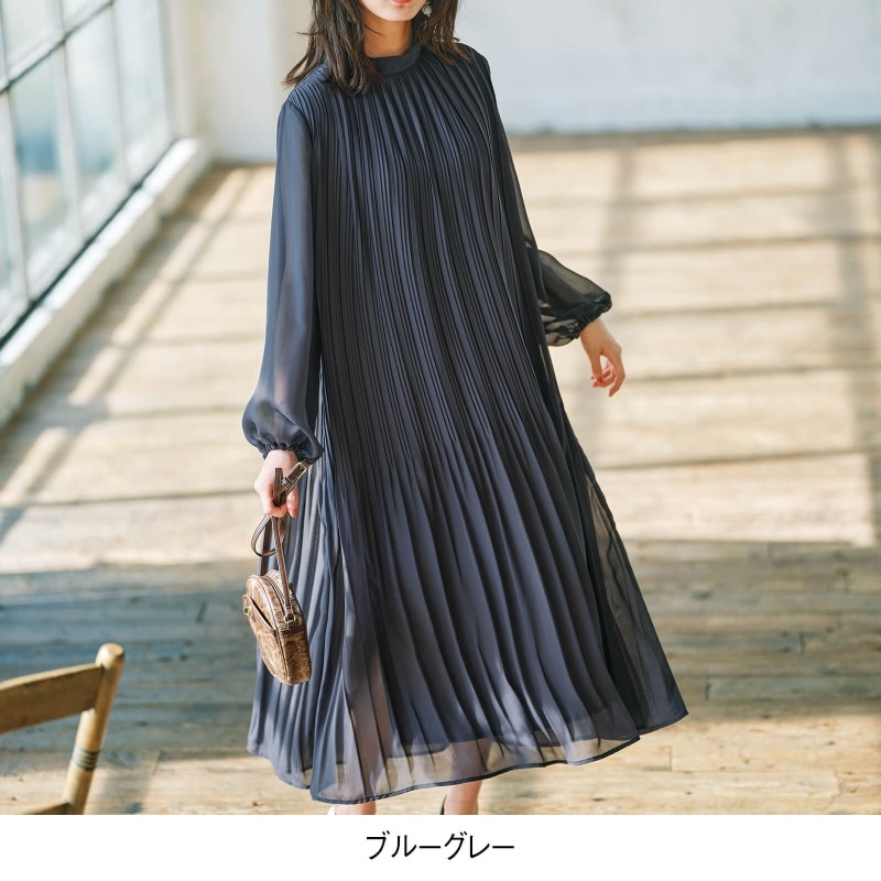 裾にかけて広がる繊細なプリーツデザインがドラマティックなロングワンピース。