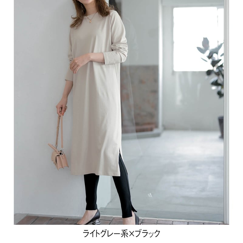 綿100%で心地いい肌当たりのワンピースにレギンスが付いて、トレンドのレイヤードコーデが即完成するセット。