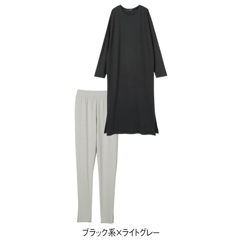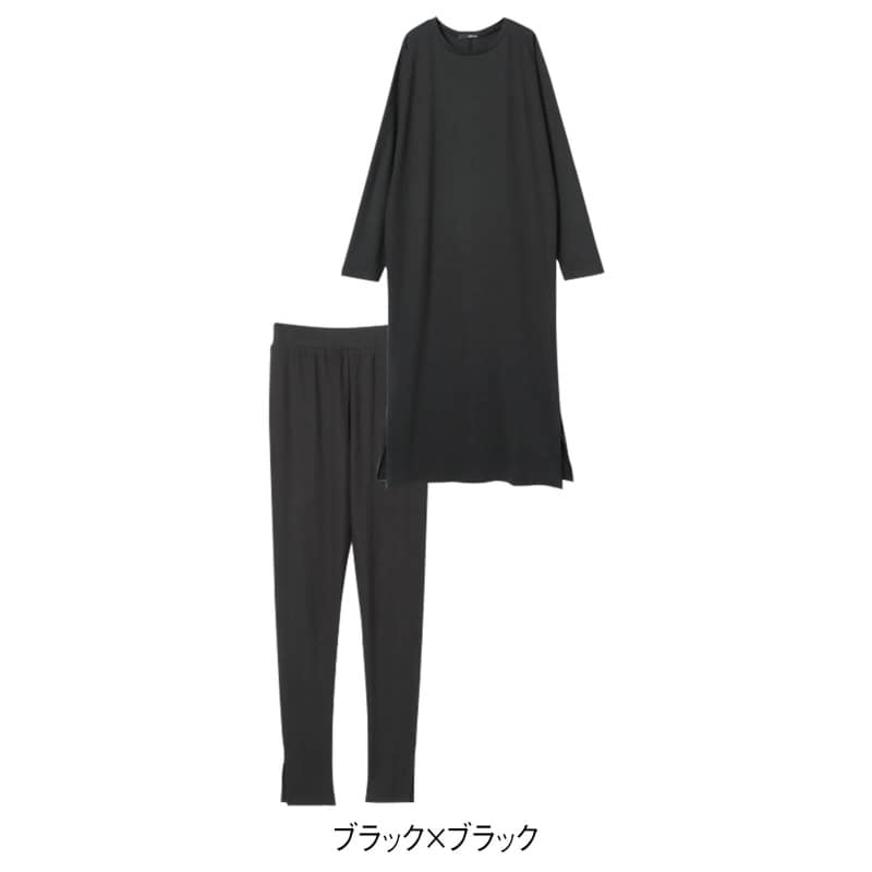 - ●素材/〈ワンピース〉綿100% 〈レギンス〉綿98%、ポリウレタン2% 〈ワンピース〉裾スリット20cm 〈ボトム〉ウエスト総ゴム使い、裾スリット10cm