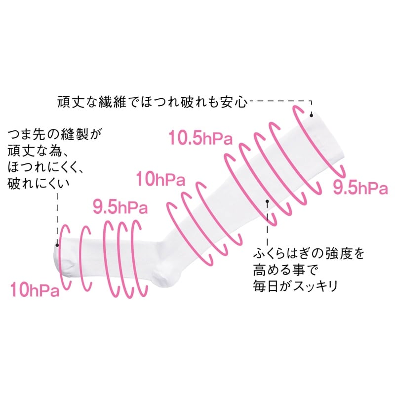 伸縮素材を使い、特殊な編み方で一定じゃなく「細かく各部で変化する着圧!」を実現!!